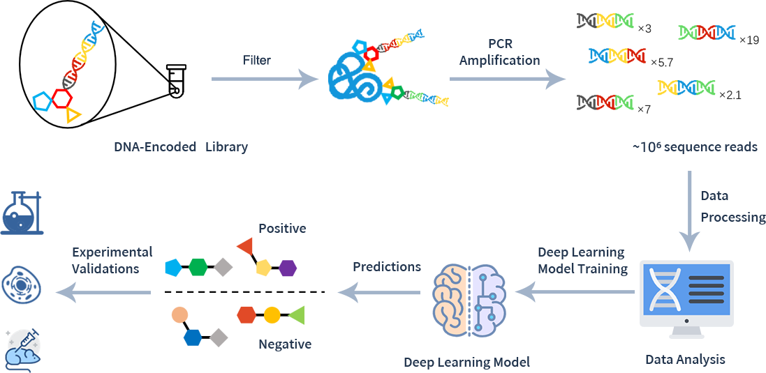 Screening of general DEL libraries for target validation and hit identification, providing the hits compounds and related SAR information based on DEL selection data